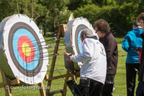 Bei strahlendem Sonnenschein musste Ina am ersten Wettkampftag zunächst 36 Pfeile auf eine 70m entfernte Scheibe schießen. Mit 251 Ringen platzierte sie sich auf Platz 10. Bei der anschließenden 60m entfernten Scheibe konnte Ina 281 Ringe schießen und sich auf Platz 9 verbessern.